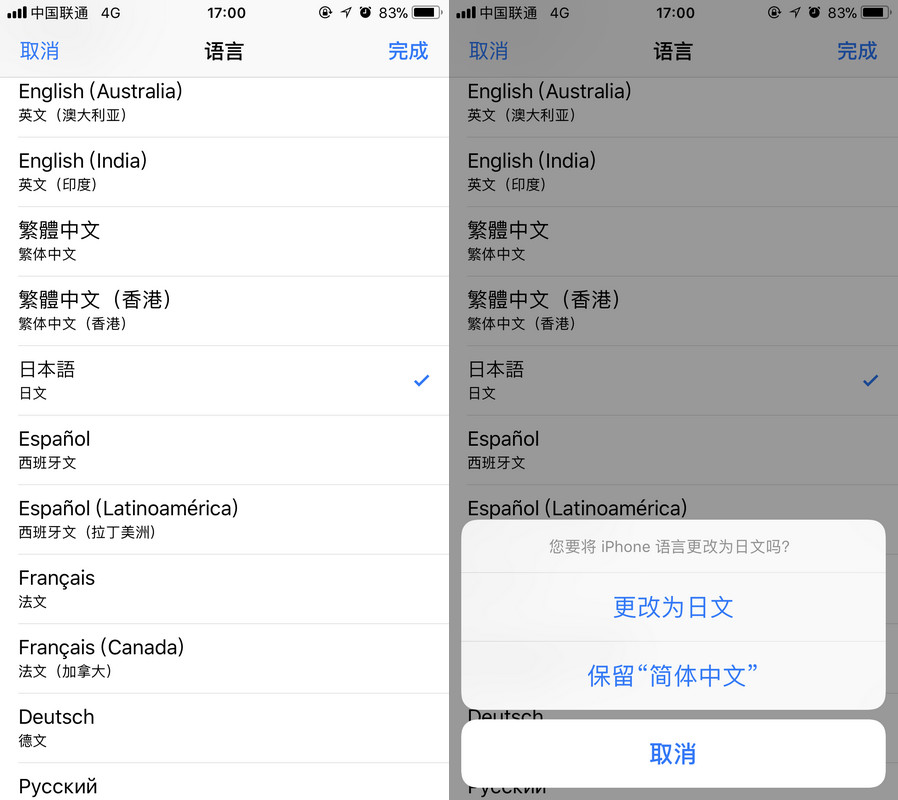设置完成后,在 iPhone “设置”下打开需要单独设置语言的应用,找到语言项就可以设置该应用的默认语言了。