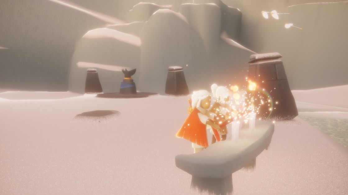 玩家在游戏中拥有极高的自由度,可以欣赏美丽的风景也可以喜新探索地图的每个角落,拯救更多的先祖之灵。在游戏过程中,还可能会遇到其他玩家,以灰色人物的形象出现,只有双方共同举起蜡烛时,才可以看清对方。