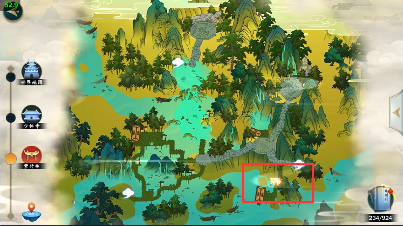 一声一世上的任务接取地点在少林寺的紫竹林中;发布任务的关键NPC在图中红圈处。