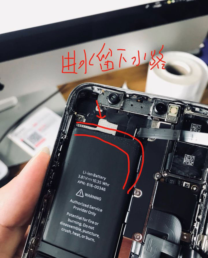 而且 iPhone 的进水标识不仅仅位于 SIM 卡位置,电池外侧部分等多处也具有进水标识。
