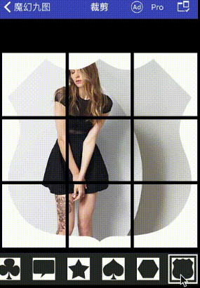 3、点击工具栏的第一个按钮是选择九宫格的形状,如果是与女友的合照那我们可以设置一个心形来表达爱意,当然还有很多千奇百怪的形状,这个就任君选择了。