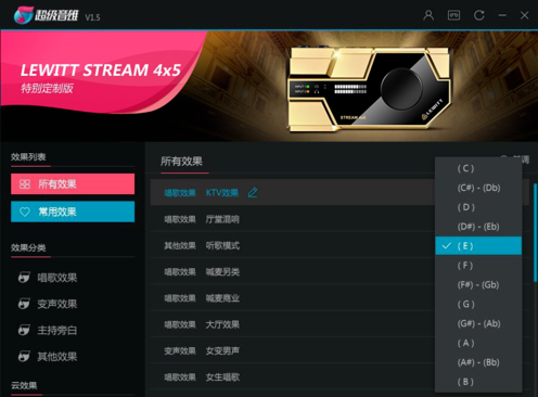 6、简易模式下,选择电音效果,选择好基调后,,切换到别的电音效果,基调不会改变;
