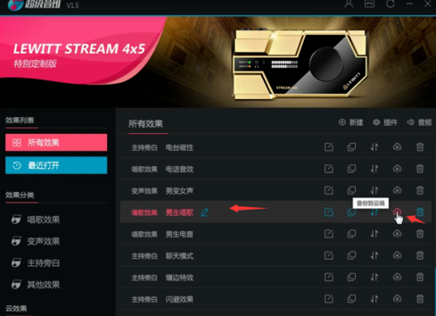 7、使用手机号码登录,我的云效果,可以把常用或喜欢的音效备份进来,在重新安装超级音雄或换电脑时可以在我的云效果,直接下载自己平时常用的音效。