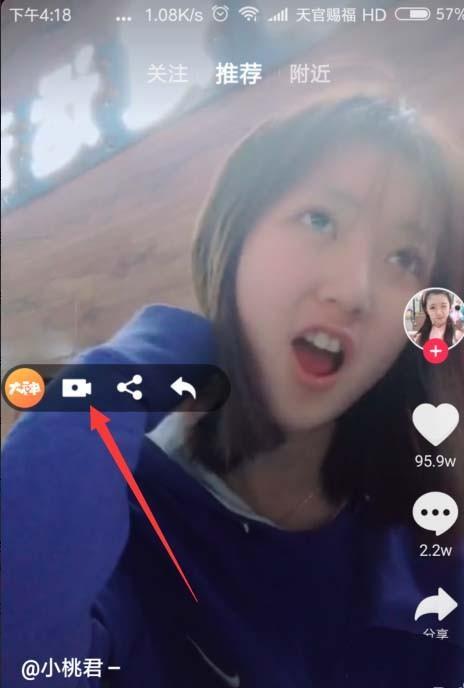 2、录制完成之后,进入抖音App,左侧有一个悬浮的录制按钮,点击开启录制;