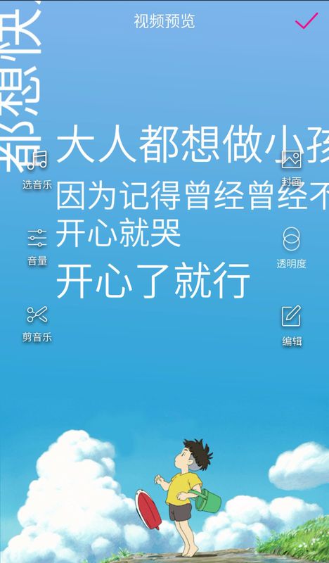 8、音量调节也是很重要的,完成之后点击右上角的√进行保存即可。