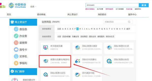 1、在电脑上进去中国移动网上营业厅,点击【业务办理】;