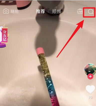 1、点击打开我们的抖音,点击右上角的搜索图标。