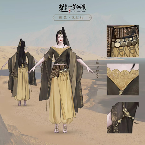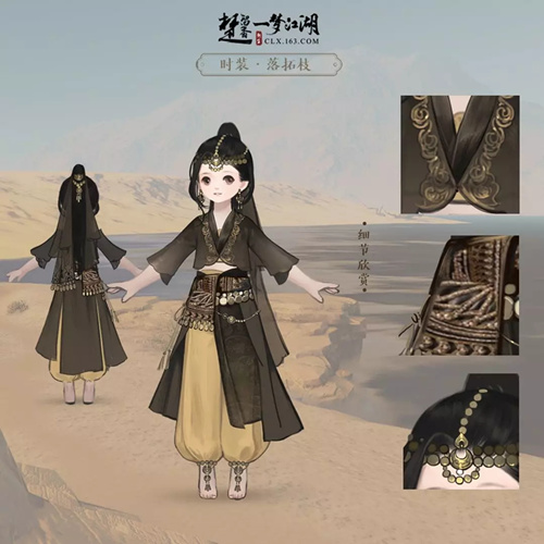 楚留香跟随全新时装不遮袖一起和我们见面的,还有西域风情的时装落拓枝也上线啦~那么,这款时装又是什么样的呢?下面,就跟随小编一起来看一下这款时装全体型的服装细节展示吧!