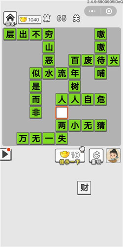 《成语招贤记》第65关的词汇有所减少,且词汇都不是很难,所以大家通关起来一定没有什么大问题。那么接下来,就跟随游戏爱好者的小编一起来看一下具体的通关答案是什么吧!