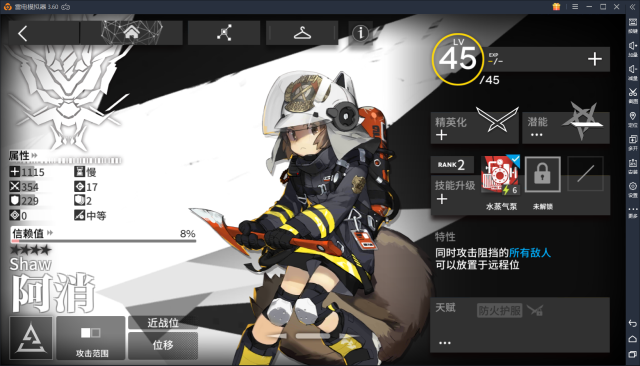 特种前期练下阿消就够了,超可爱的小松鼠~主线第二章中后期的特殊地形会用到,把敌人直接推下楼。拿到崖心之后就练崖心,精英之后可对敌人造成无视防御与法术抗性的伤害,并带眩晕debuff。
