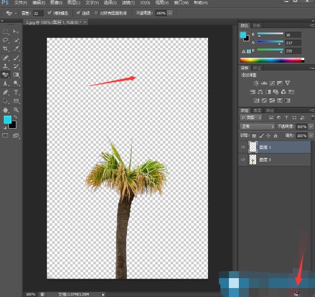 3、去除背景后,图层会变成透明,为了保留在后面的修改不会破坏原来的图层,可以点击右下角的添加图层,增加多一个用来修改的图层;