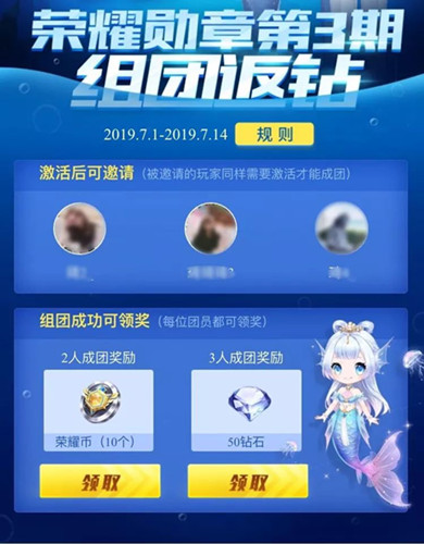 荣耀勋章组团返钻活动玩法介绍