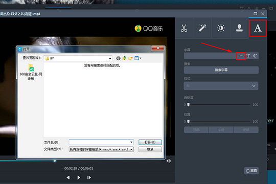2、弹出编辑的界面后,很多音乐MV与视频中本身就已经自带字幕了,如果你的视频文件与字幕文件已经分离为两个单独的文件,则可以点击添加字幕文件;选项,弹出打开的界面后,用户可以选择.ass;、.ssa;和.srt;字幕文件进行字幕的添加,添加完成后就可以在下方调整字幕的样式、透明度与位置,如下图所示:
