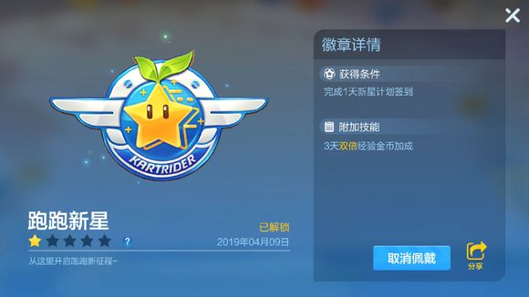 完成1天的新星计划签到即可获得,附加技能效果是3天双倍经验金币加成。