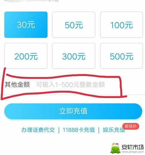 5、点击之后我们就可以点击充值金额了,当然我们也是可以在下面直接输入自己想要充值的金额,但一定要是整数。