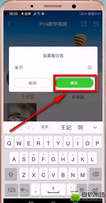 4、点击之后就可以在里面输入备注的名字了,最后点击确定就备注成功了。