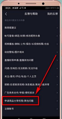 4、之后我们就可以在这个页面中点击【申请商品分享权限/其他问题】