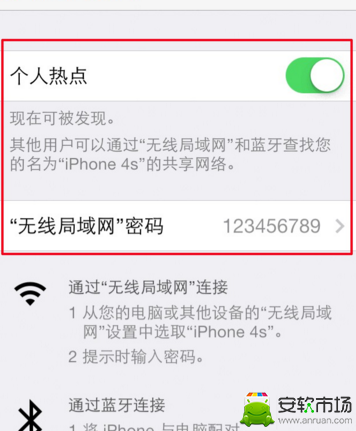 2、我们记住自己的个人热点名称和密码,要是有人连接了你的热点,在最上方就会有一个显示,显示出:谁谁谁连接。