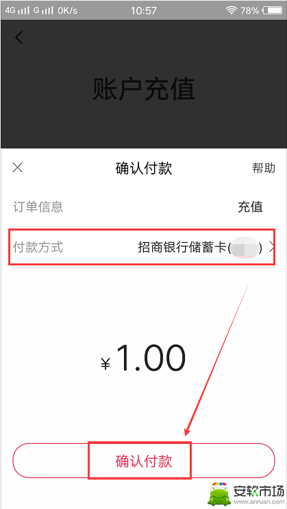5、然后就可以选择付款方式,选择你的付款账户,并点击【确认付款】