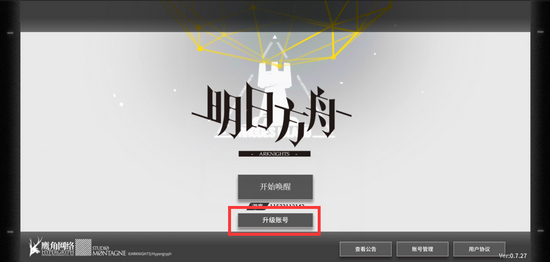 在登录界面点击升级账号,即可绑定带有预抽卡的账号或绑定新账号。