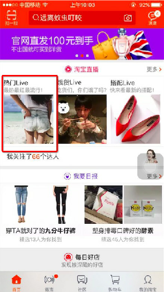 2、点击打开手机淘宝,点击“淘宝直播”,进入“热门live”。