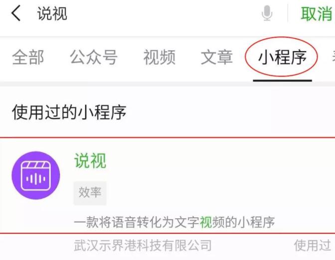 1、打开微信然后搜索【说视】小程序,如下图所示;