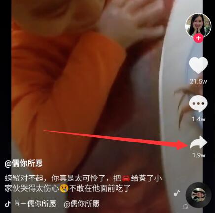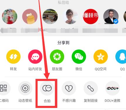 1、首先打开抖音,然后找到想要合拍的视频,点击有下角的转发功能;