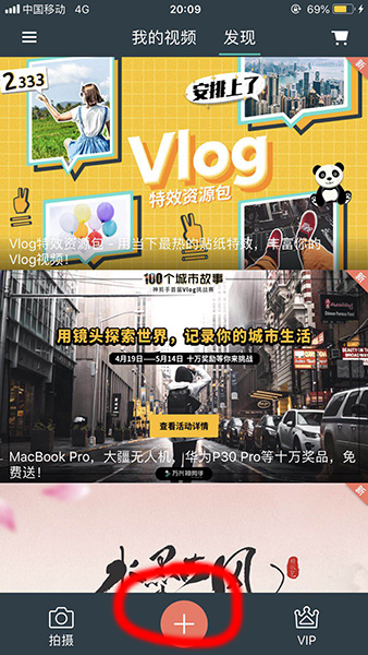 1、首先我们下载安装好“万兴神剪手”这款软件,打开之后点击底部的【+】号;