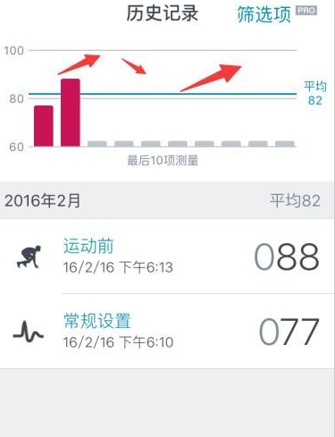 3、在历史记录中,我们是可以见到各时间段内的心率情况。
