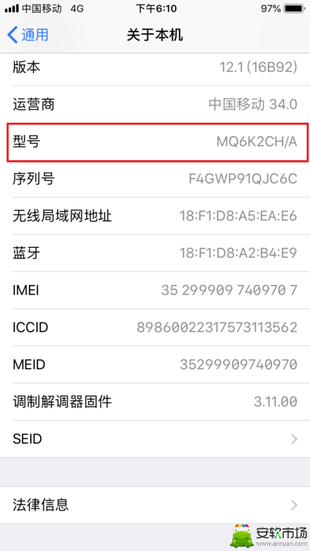 4、我的 iPhone6 是国行版本,在型号一栏可以看到“CH”字样,它即代表中国(China)。
