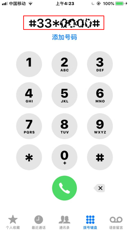 3、键盘输入【#33*运营商服务密码#】点击【拨号】;