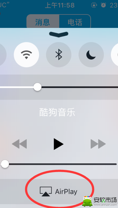 2、打开手机上的控制按钮,如下图,点击带着【airplay】按钮;