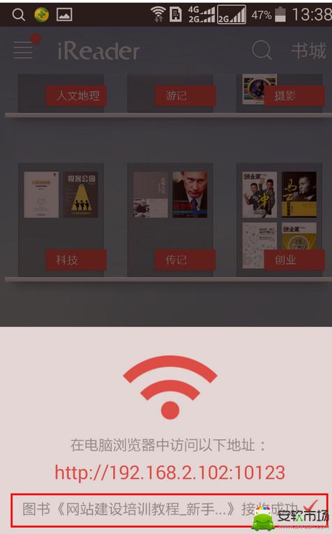 6、之后会提示上传成功,这样就可以在书架上看到书籍了。