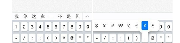 1、长按数字0,点击左下方的数字进入符号界面,之后会看到一个¥符号或者是$符号,长按符号就可以看到更多的符号了;