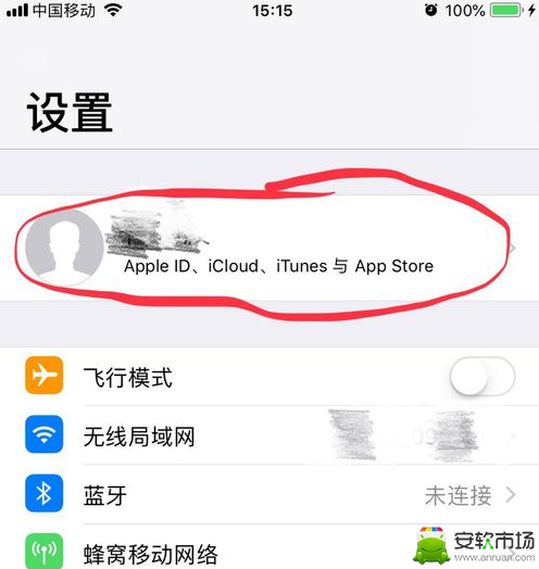 3、点击进入第一行【Apple ID】;