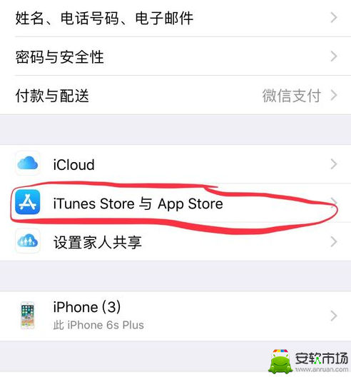 2、点击进入【iTunes Store与APP Store】;