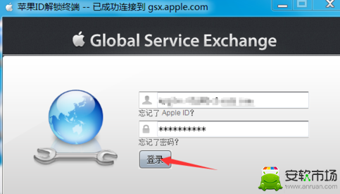 2、打开【GSX解锁终端】,输入管理员账号密码,点击【登陆】;