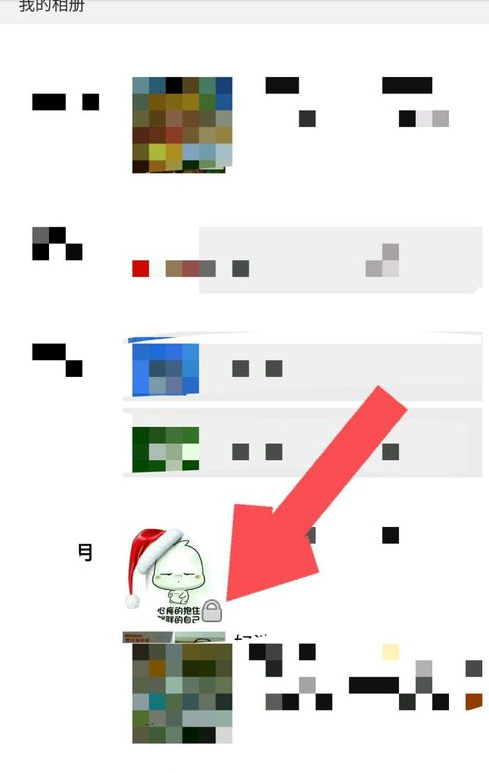 6、设置完成后该条朋友图片下方会出现一个锁的标志就就可以了。
