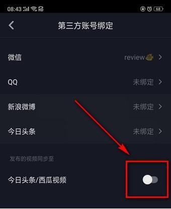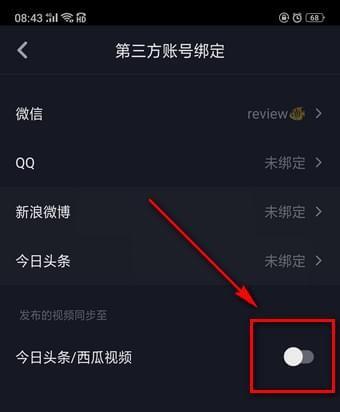 4、寻找最后一个选项【今日头条/西瓜视频】,点击右侧按钮同步就可以了。