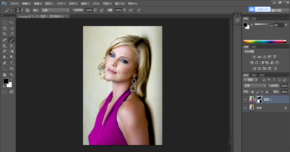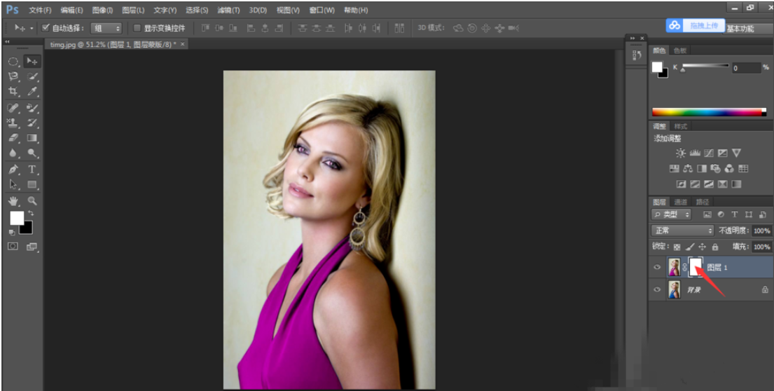 使用蒙版工具,对图层建立图层蒙版,