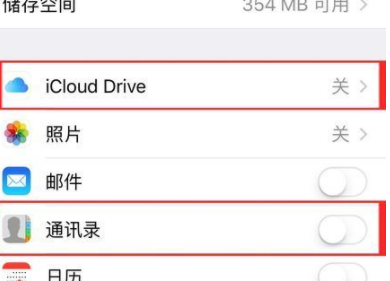 1、我们首先打开Apple手机中设置,找到【ICloud】选项,然后关闭ICloud中的“通讯录”和“iCloud drive”;