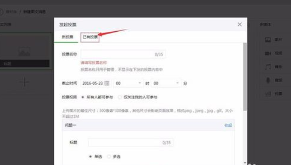 5、然后我们就可以设置封面了哦,点击右边的“投票”。