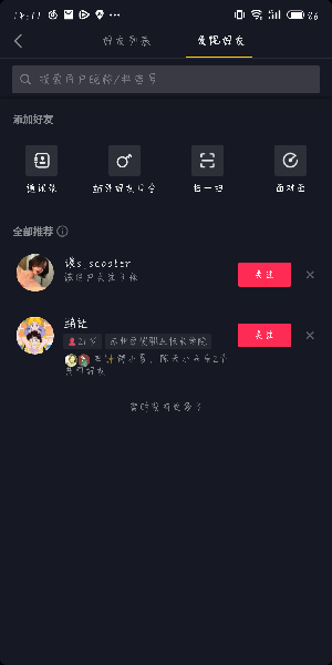 3、然后我们就可以在这里使用“昵称”或者是抖音号来进行好友搜索了哦。