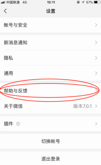 2、在设置中找到“帮助与反馈”。