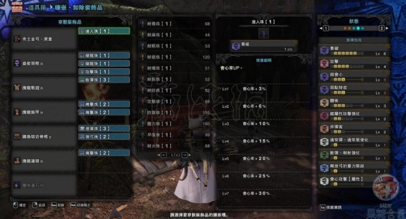 裤子就看自己搭配啦,这样主要技能就好了(体术3,弱点特效3,超心1),之后需要一些属性珠(打什么属性装三颗什么珠),解禁之前就够玩了,不过珠子等你打历战了可以再刷。