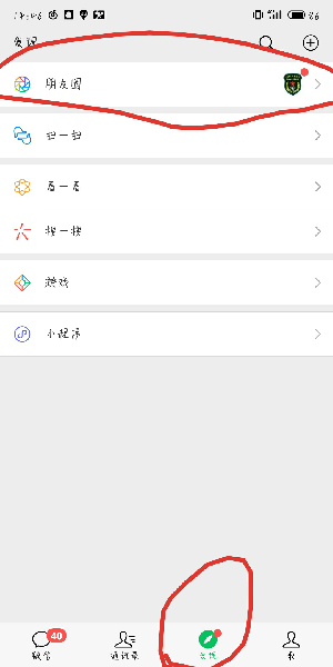 1、点击打开我们的微信,点击进入发现页面,然后点击上面的“朋友圈”就可以了。