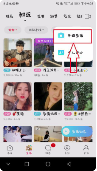 1、打开陌陌,点击“直播”选项;