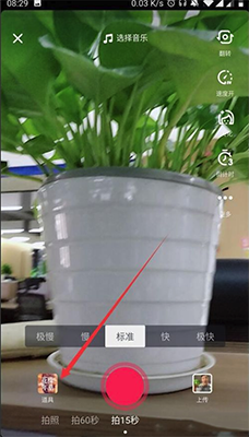 2、拍摄按钮点击了以后就进入了拍摄页面,此时点击左边的道具;