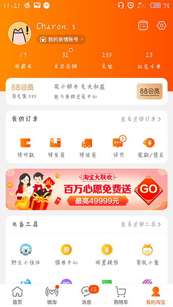 我们只需要打开淘宝的我的页面就可以看到淘宝大联欢的入口了哦!