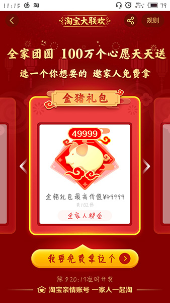 淘宝亲情号春节大联欢怎么参加?淘宝春节大联欢活动怎么玩?淘宝今年的新年活动有点孝顺啊,居然是亲情号的活动。那么淘宝亲情号春节大联欢怎么参加呢?可别少了这份孝心啊。下面就快和小编一起看看吧!